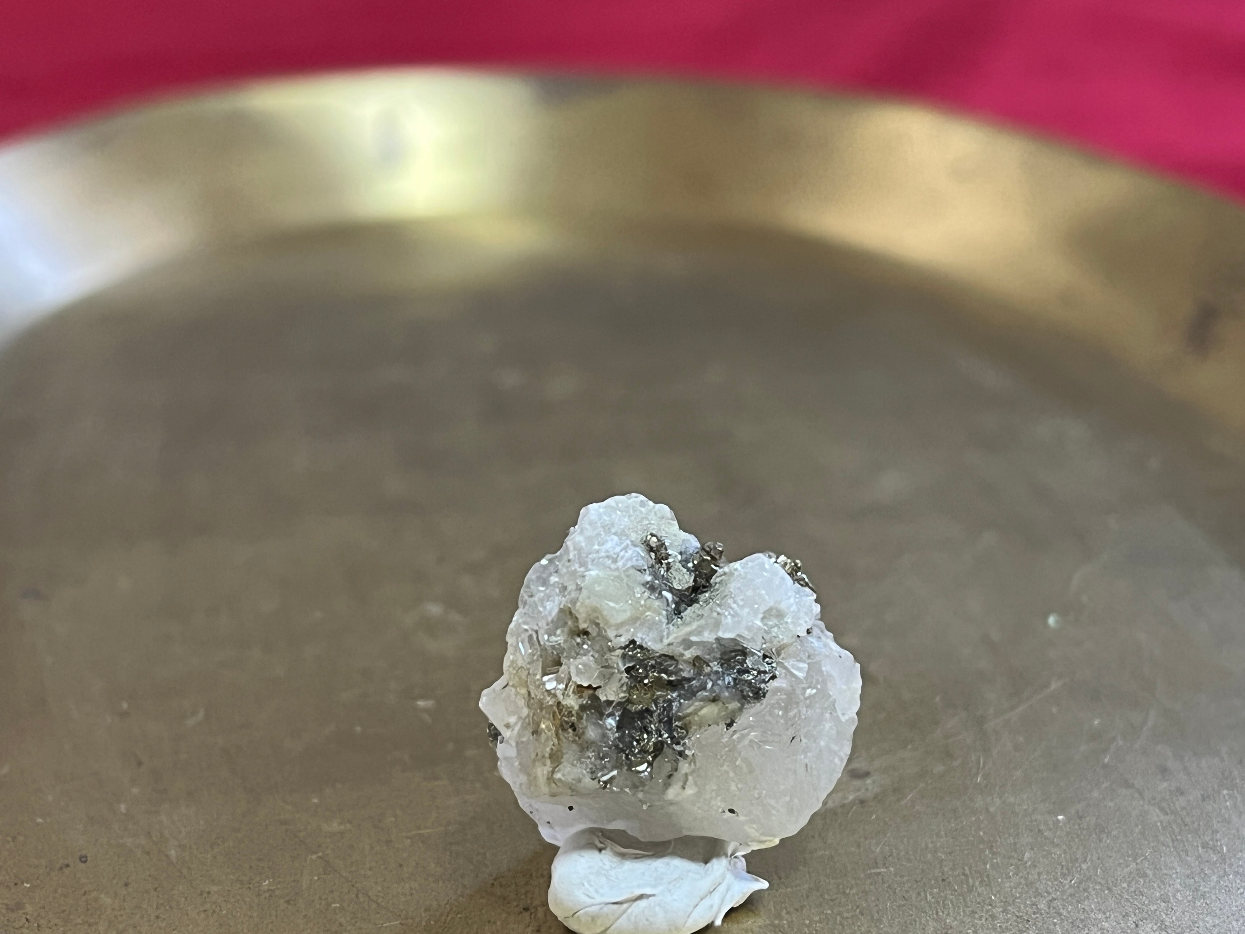 モロッコ産のカルサイト、黄銅鉱です。