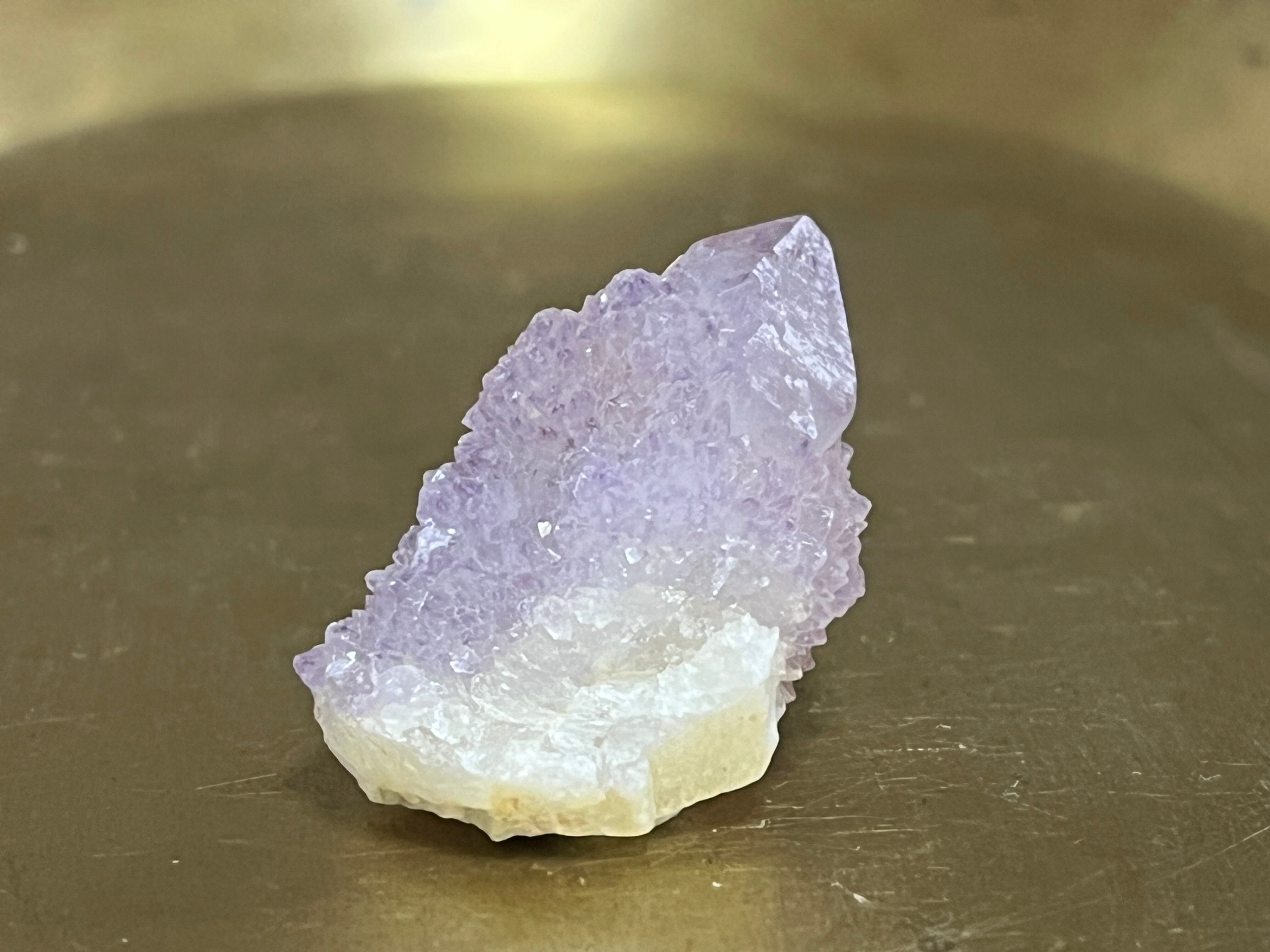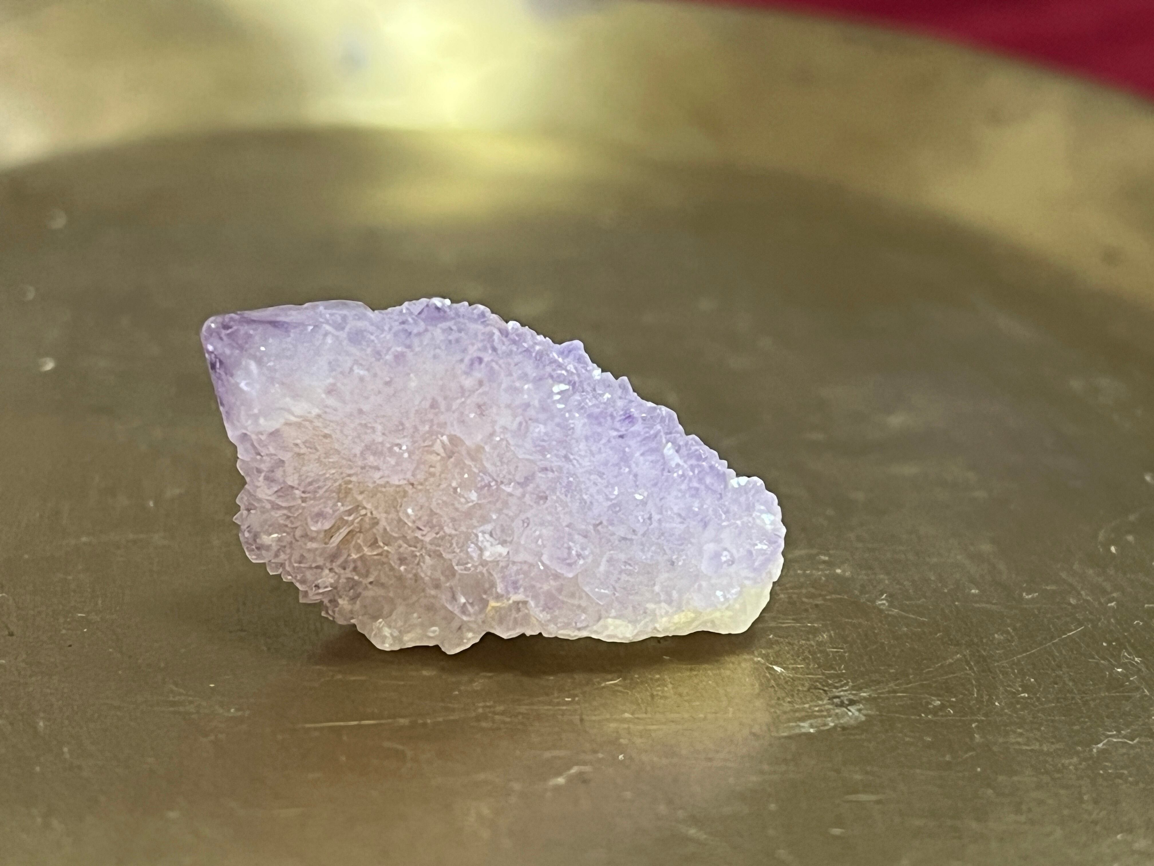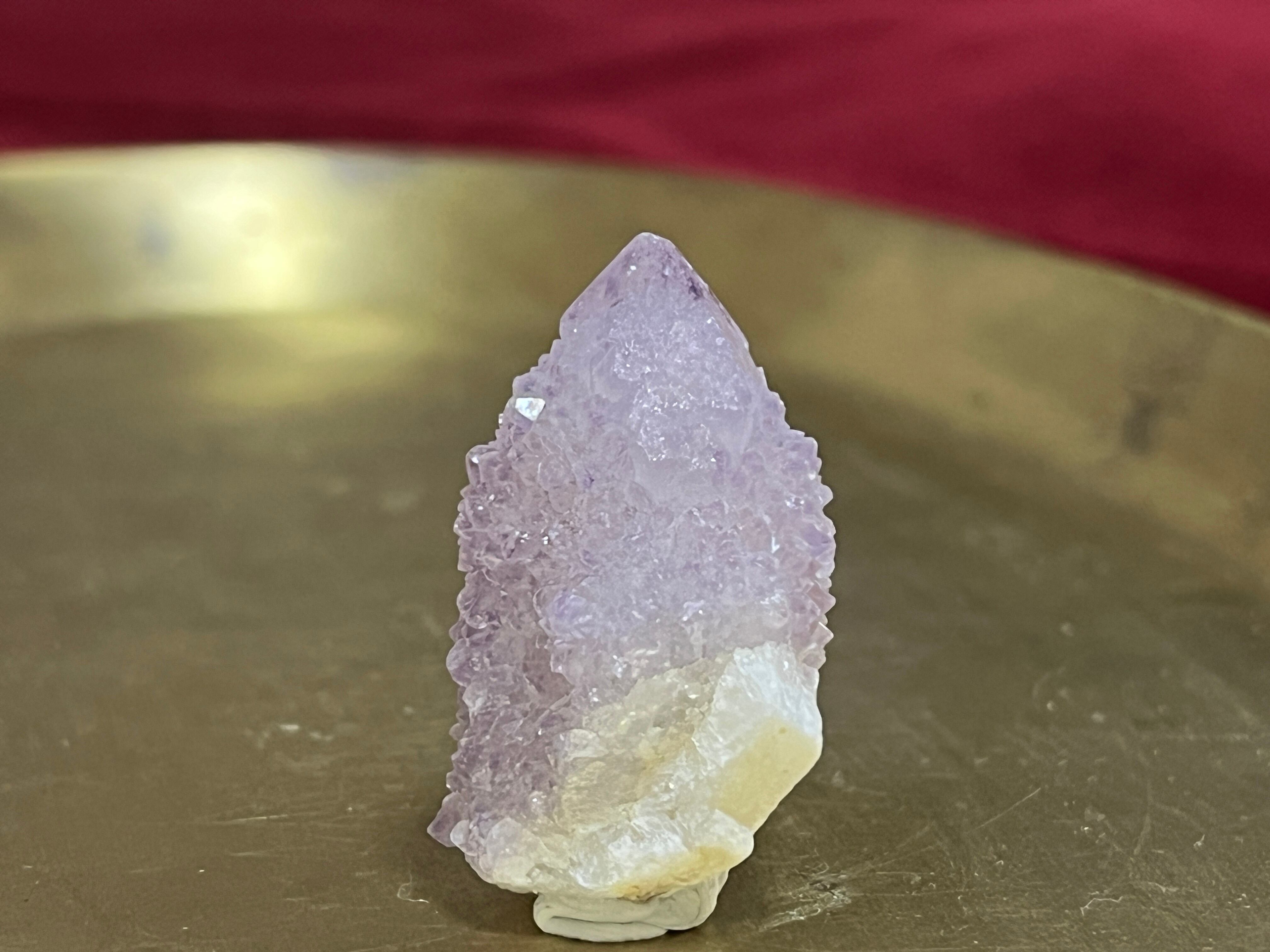 見た目がサボテンに見えることから、カクタス(サボテン)アメジストと呼ばれるこの石は、精霊の石とも言われており、南アフリカ原住民のシャーマンたちは、精霊が宿る特別な石、スピリットクォーツとして大切にしていたとされています。カクタスアメジストは特に極めて高波動なエネルギーを持っていると言われており、持ち主のストレスを取り除き、チャクラを調整し、またカルマを昇華するサポートをしてくれる石です。この石と瞑想することで高次の存在や守護霊様と繋がりやすくなると言われており、現世においての使命に気づいたり、進むべき道へむかう勇気が湧いてきたりするようになるとも言われます。必要な時に必要な方のもとに行くというイメージがあります。また、人間関係についても、団結力や協調性を高めて家族やパートナー、また仲間や関わる人たちと調和を図り、協力しながら問題を解決したり、物事を進めていく時にも力を貸してくれる石です。プロジェクトや目標を皆で達成したい時などにもおすすめです。