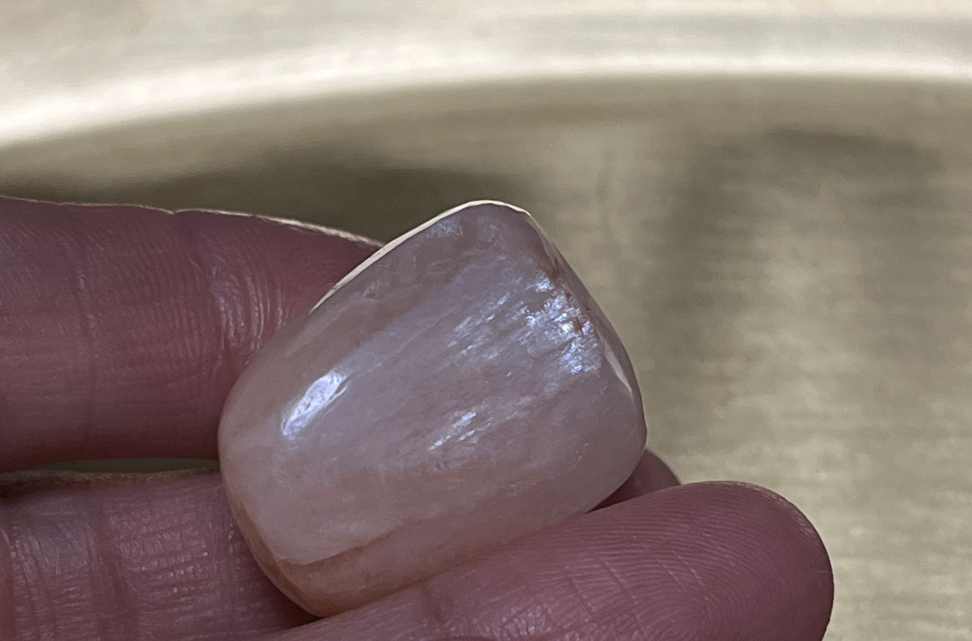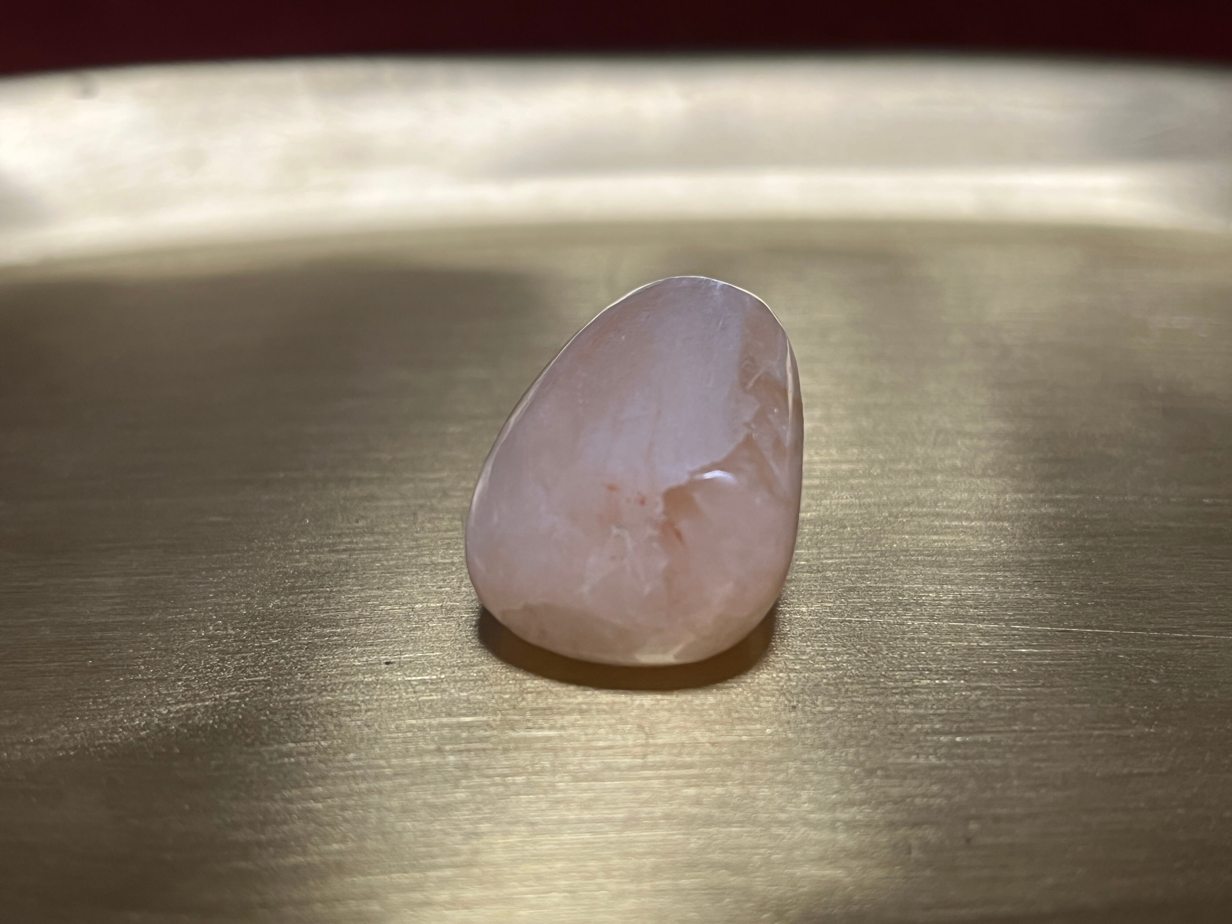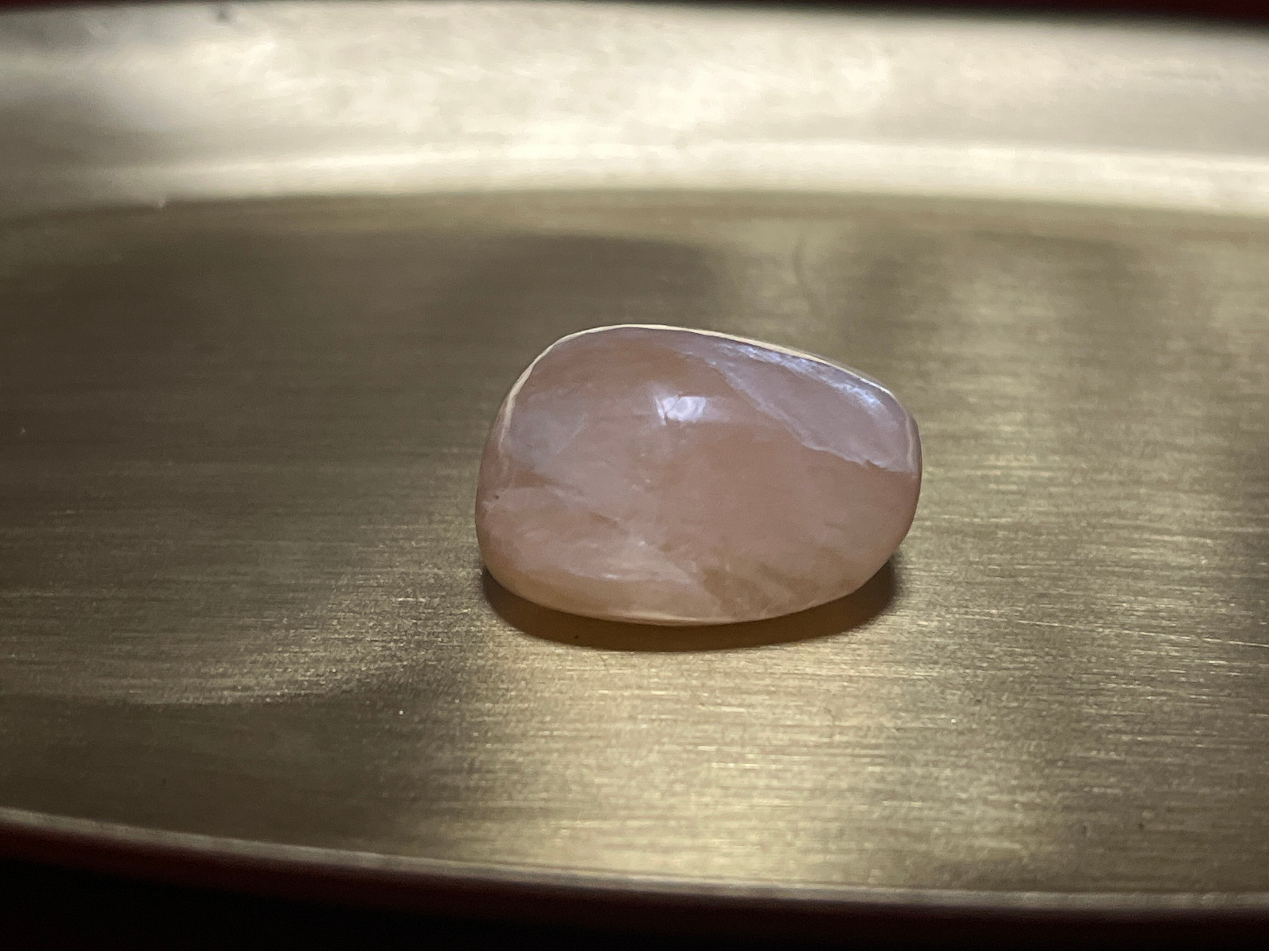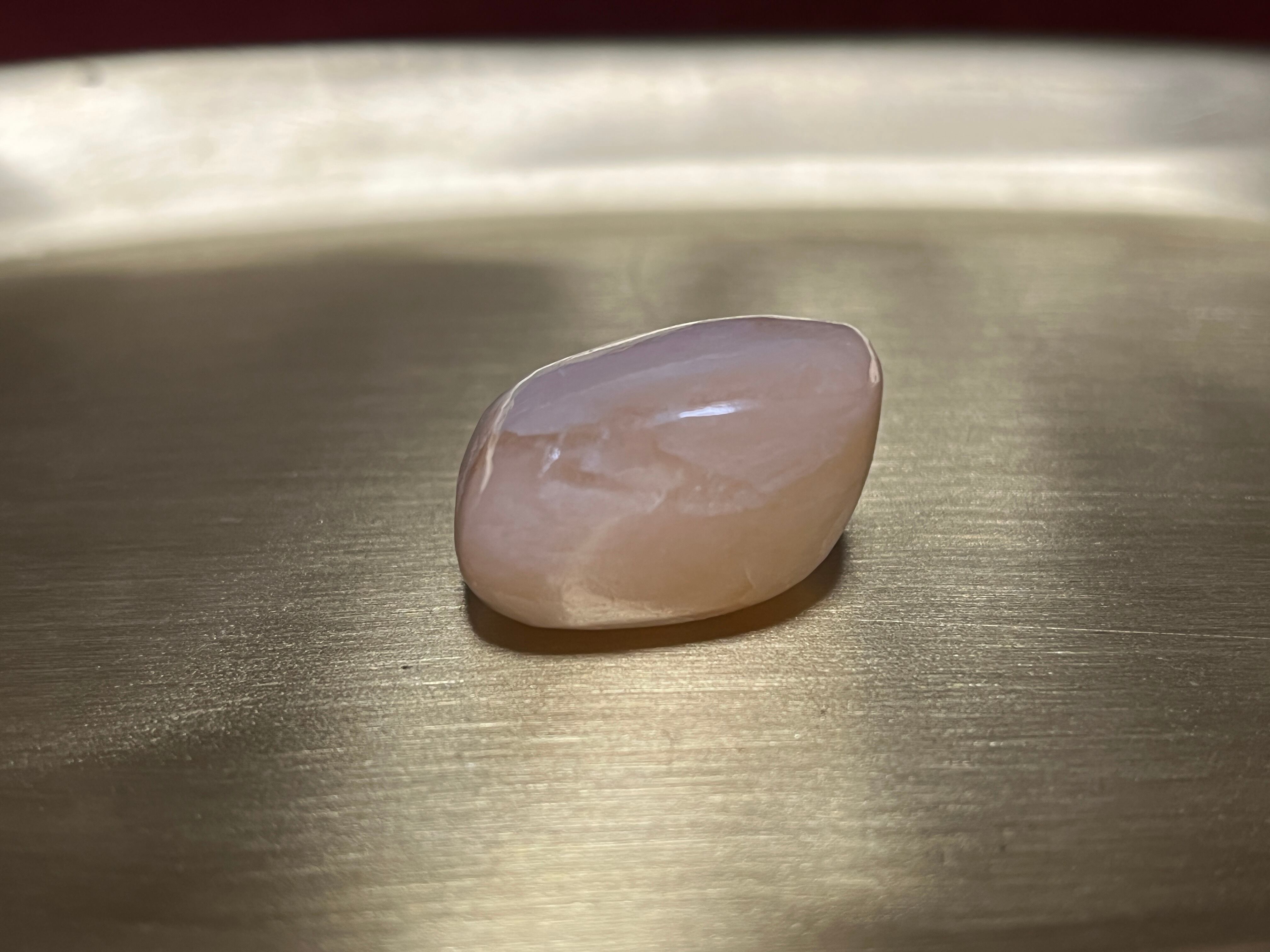 ギリシャ語で「輝き」や「微光を放つ」という意味に由来するとおり、その光沢はとても美し輝きをしており、ヒーリング効果が高く、その包み込むようなあたたかな色味で安心感をもたらしてくれることから、安眠効果もあると言われている石です。