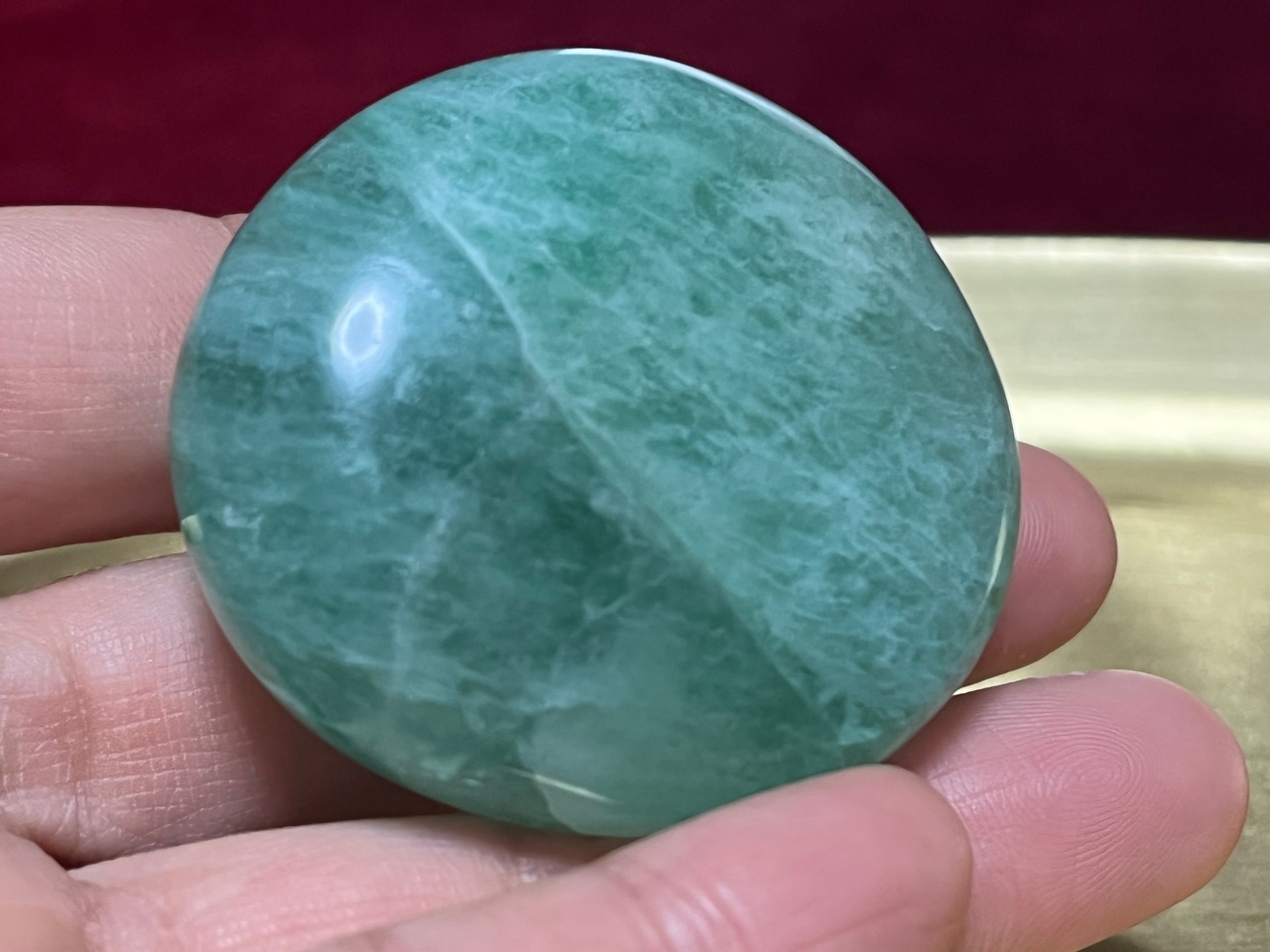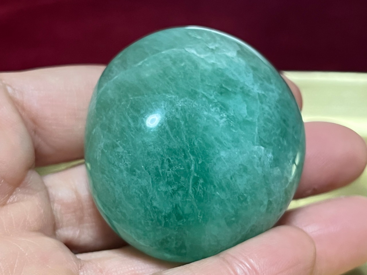 マダガスカル産のグリーンフローライトのタンブル、Lサイズです。