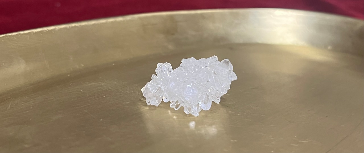 ダブルターミネーテッドとは、2つの先端を持つという意味で、こちらはダブルターミネーテッドの小さな水晶がたくさん集まり、丸い形を形成しています。強い浄化作用があるとされ、持ち主だけでなく、空間のエネルギーも整える力があると言われており、空間浄化にもおすすめの石で、一方の先端から受けたマイナスのエネルギーを浄化し、もう片方の先端からポジティブなエネルギーに変えてくれると言われています。また、ストレスを軽減したり、心を軽くしてくれる効果があるとされ、ヒーリング効果が高い石でもあります。癒されることで、本来のエネルギーを取り戻したい時にもおすすめです。